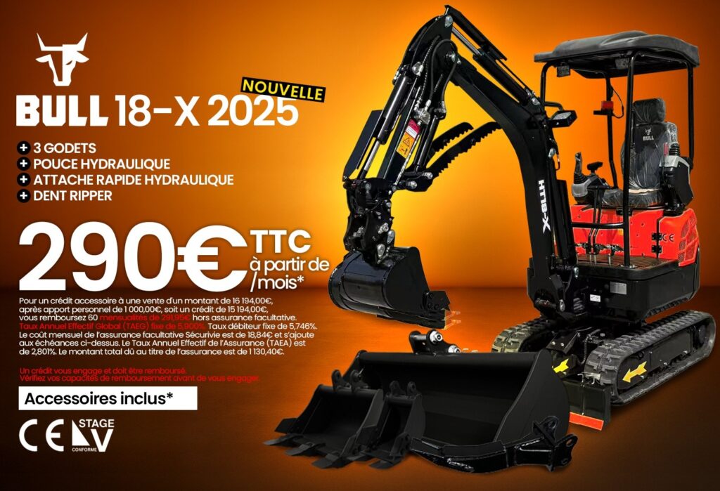 Par exemple, la Bull 18-X 2025 est disponible dès 290 € TTC / mois une opportunité unique pour investir dans du matériel professionnel sans immobiliser votre capital.