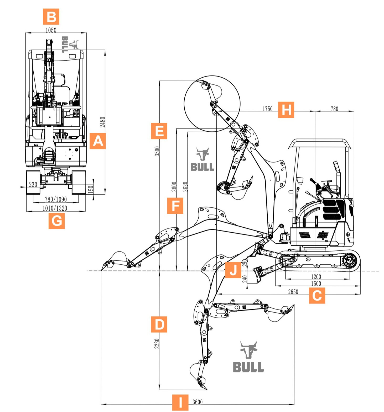 Personnalisez votre mini-pelle Bull selon vos besoins