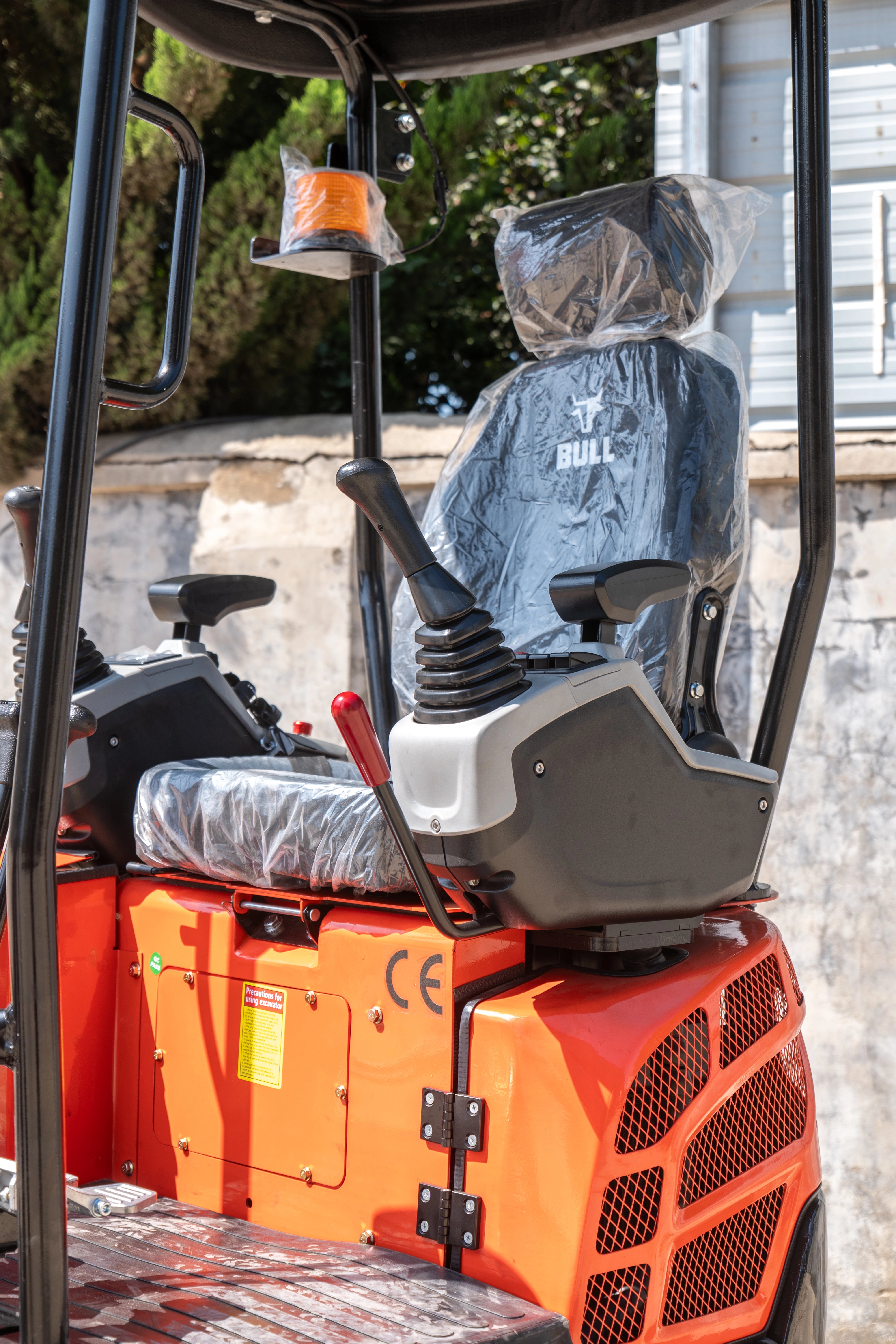 Découvrez la mini-pelle BULL dans différentes configurations et situations, angles de travail, équipements, détails techniques et usages terrain.