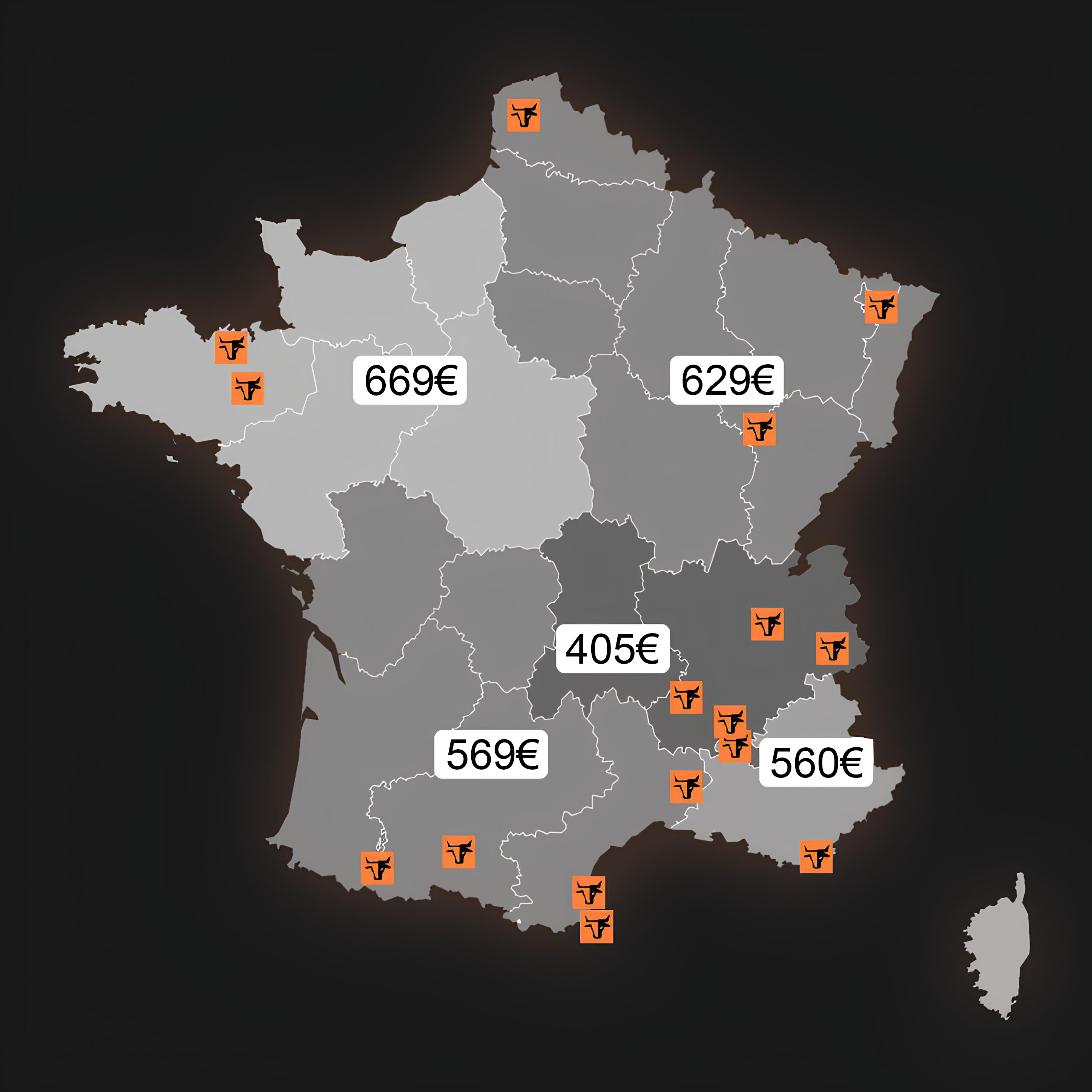 Zone 1 : (Rhône-Alpes + 84 + 30) : 405€ HT
